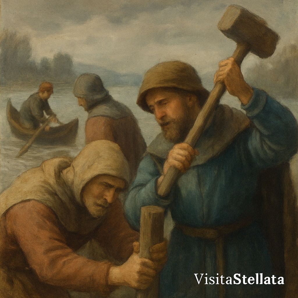 Ogni nome nei registri è un gesto: un asse segato, un palo piantato, un fusto ingrassato col sapone. Non ci sono duelli né truppe in marcia, ma mani che costruiscono sicurezza con martelli e corde.