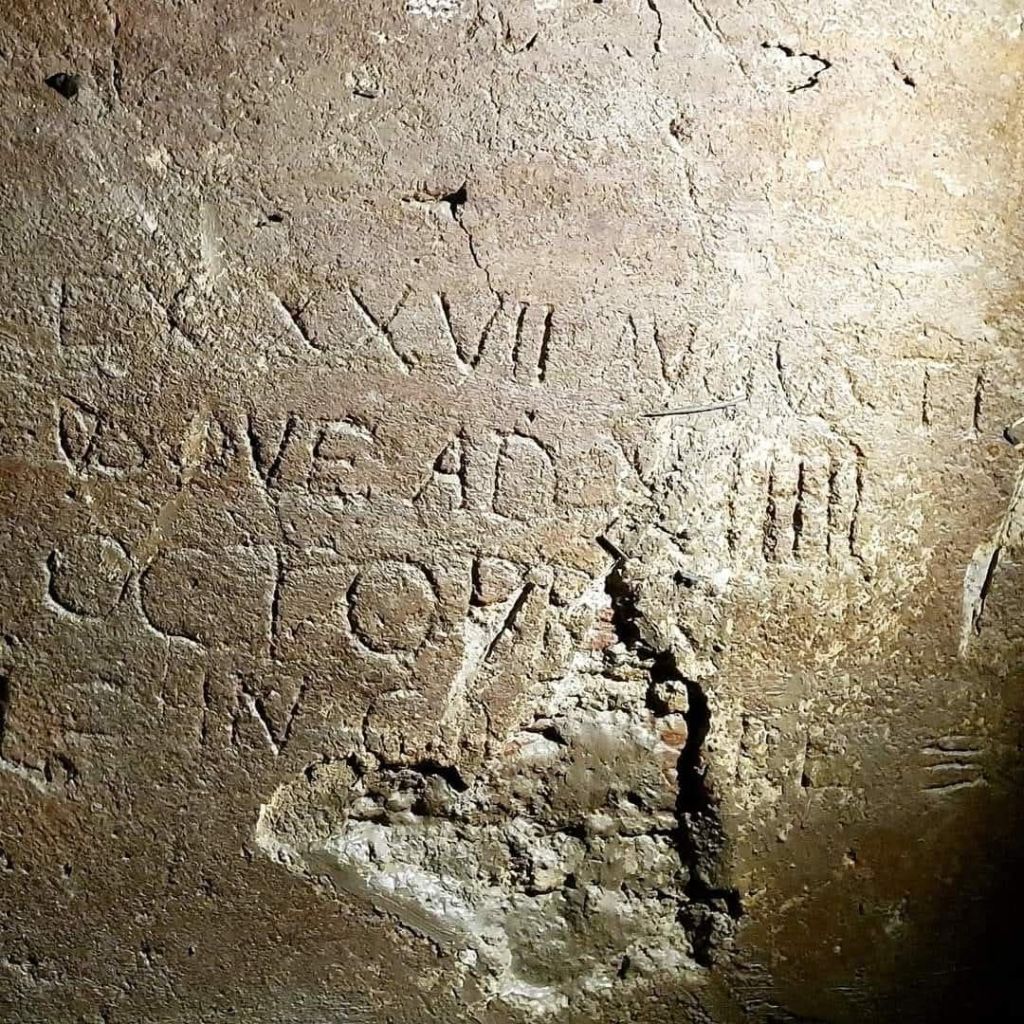 Sulle stesse pareti compaiono altre incisioni con numeri romani e parole come OCTOBR. Tra queste spicca una formula: “EX XXVII AUGUSTI” – dal 27 agosto.