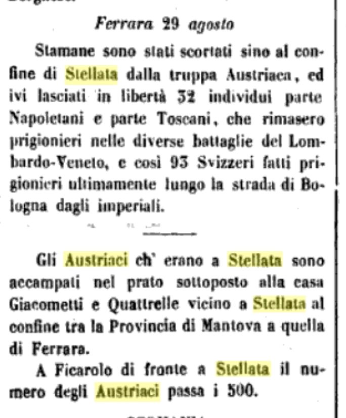 Cronache del tempo, come il Foglio di Verona del 29 agosto 1848, riportano che gli Austriaci condussero prigionieri fino al confine di Stellata, dove alcuni furono rilasciati: Napoletani, Toscani e Svizzeri catturati nelle battaglie del Lombardo-Veneto.